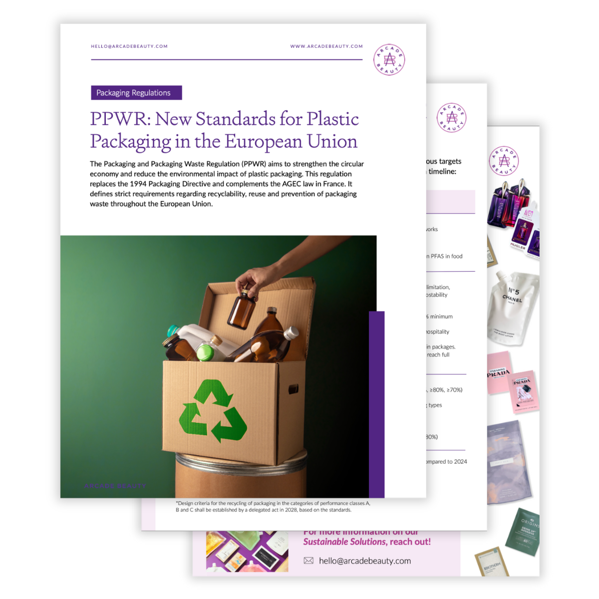 Have you heard about the European Union’s new PPWR requirements? Arcade Beauty’s White Paper, PPWR: New Standards for Plastic Packaging in the EU, explains the updated regulations for recyclability, reuse, and reduction of packaging waste across the European Union.